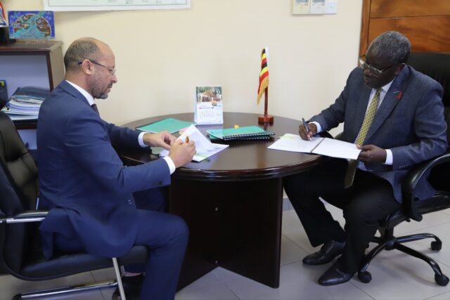 In witness of the signing ceremony were; Mr. Mutiibwa Robert Kirya – Principal Water Officer, Mr. Erisa Kyeyune – Senior Water Officer and Bisoborwa Paul – Senior Sociologist from the Rural Water Supply and Sanitation Department under
